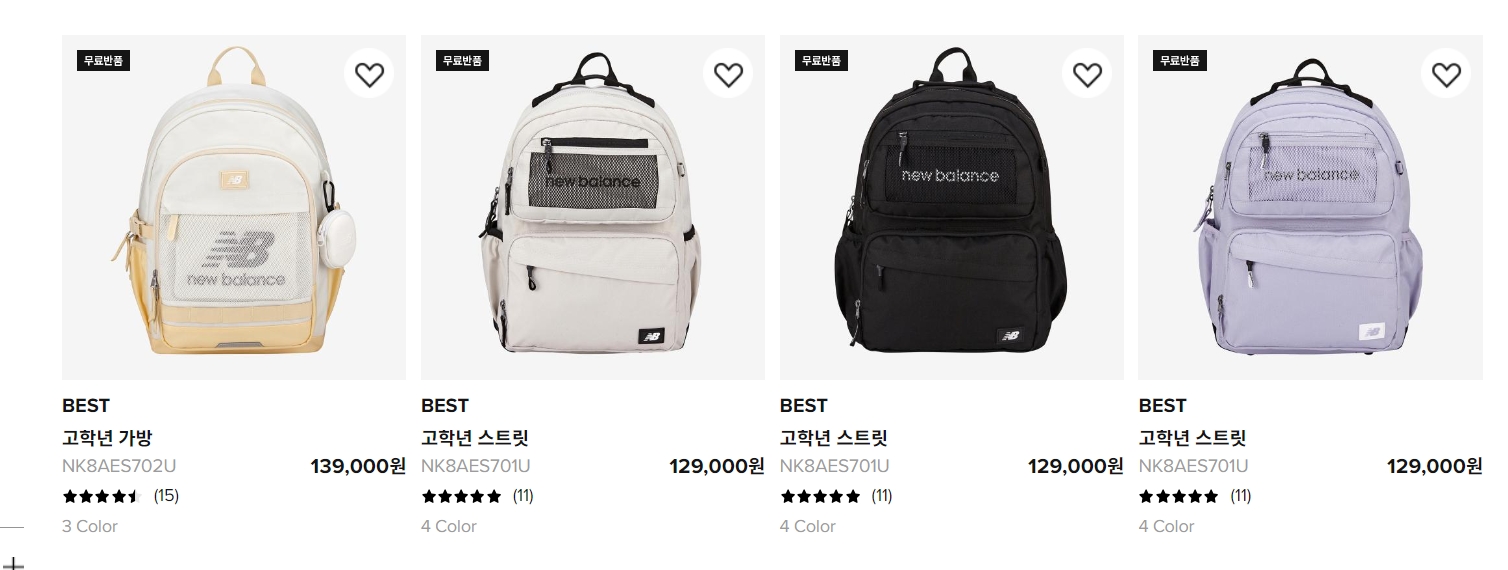 뉴발란스는 저학년에게도 고학년에게도 인기 있는 책가방 브랜드입니다. 홈페이지에서도 따로 저학년 고학년 용을 분류해 놓았을 만큼 라인을 구분해서 판매하고 있습니다.
