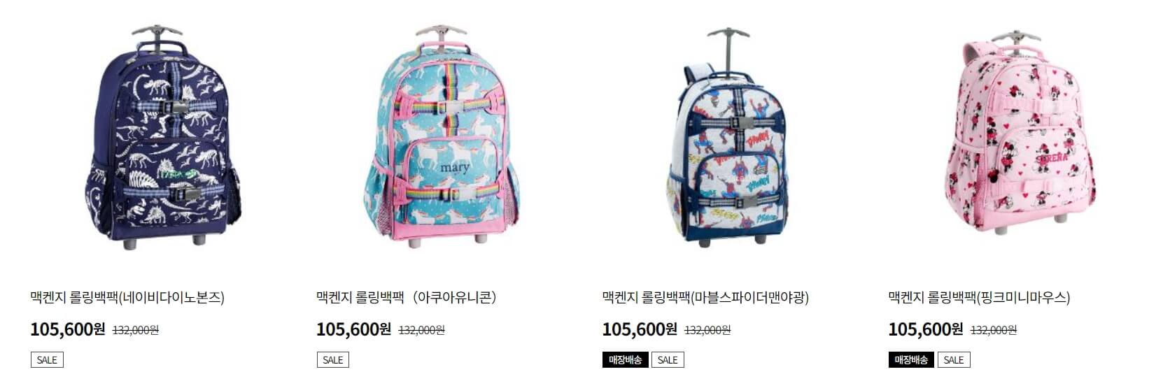 미국 브랜드인 포터리반 키즈 백팩을 고르실 때는 스몰 백팩이 아닌 라지 백팩으로 선택하셔야 합니다. 스몰 백팩은 5~8세용이기 때문입니다. 또한 책가방이 무거운 아이를 위한 캐리어용 백팩도 있는데요. 가격이 10만 원대 초반에 불과합니다.