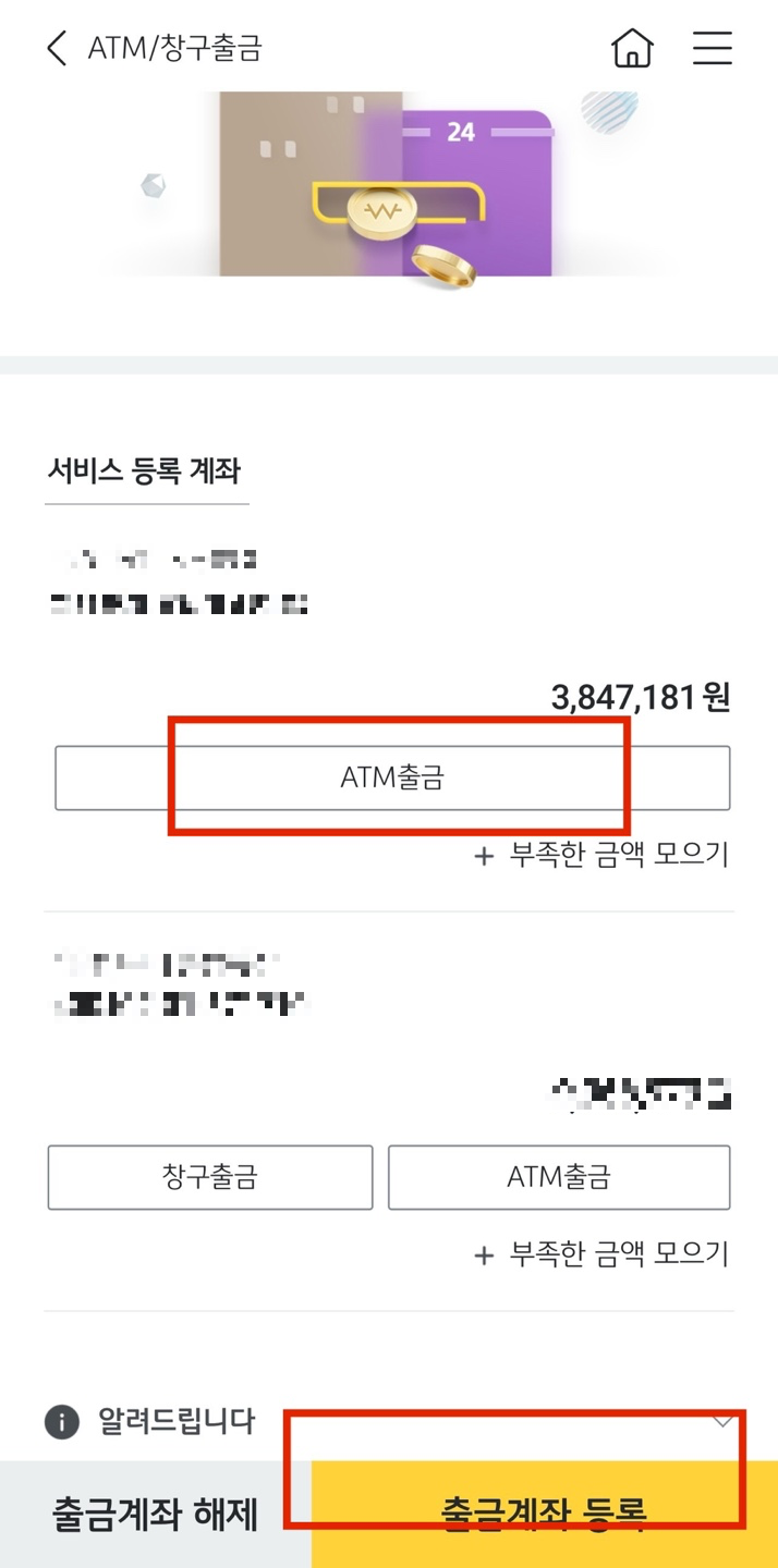 ATM 출금을 누르시면