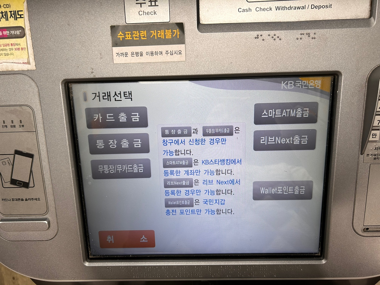 위의 과정을 거쳐서 국민은행 ATM기기를 찾으셨다면, 카드없이 현금 인출하는 방법에 대해 알려드리겠습니다.
