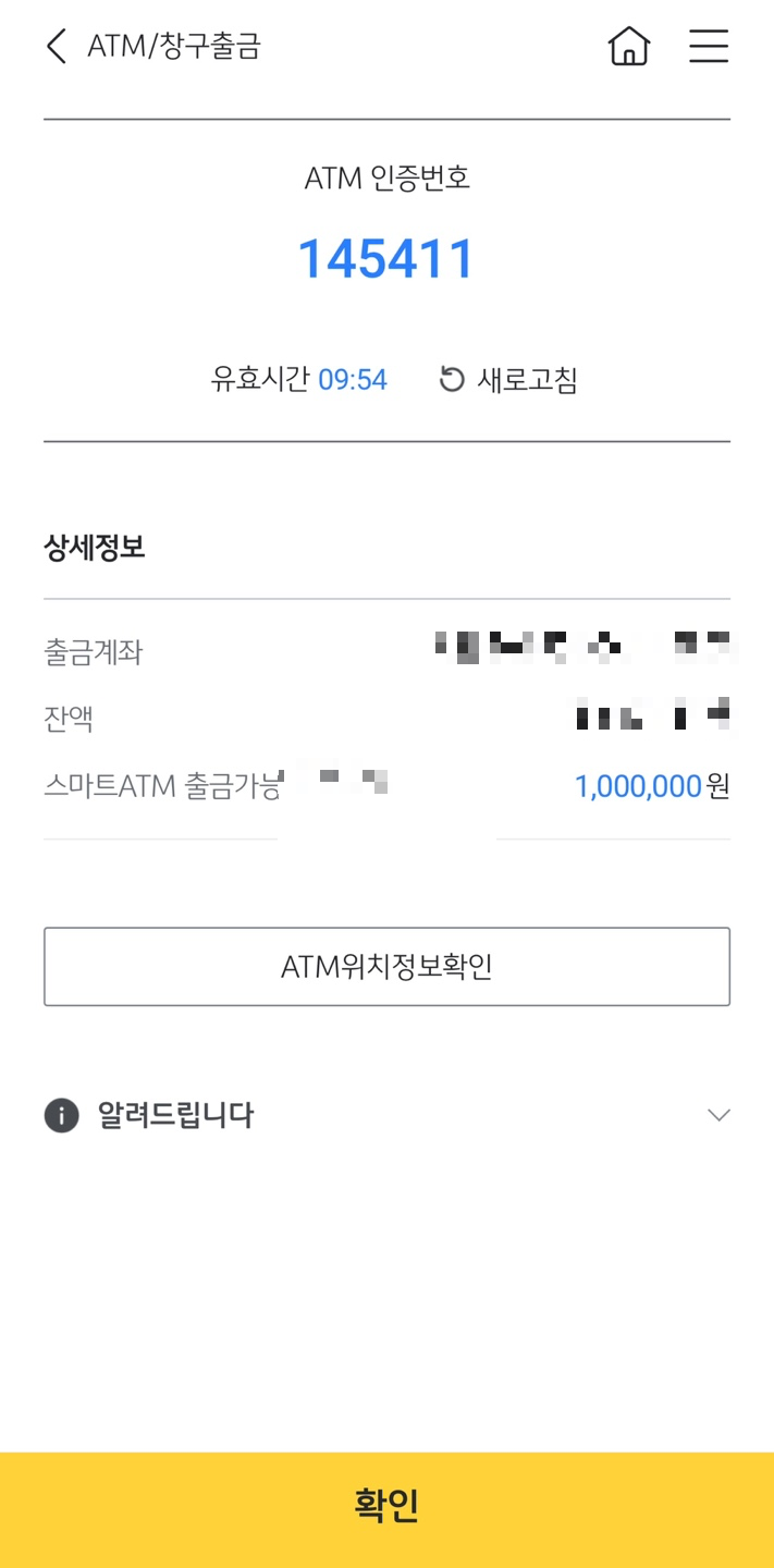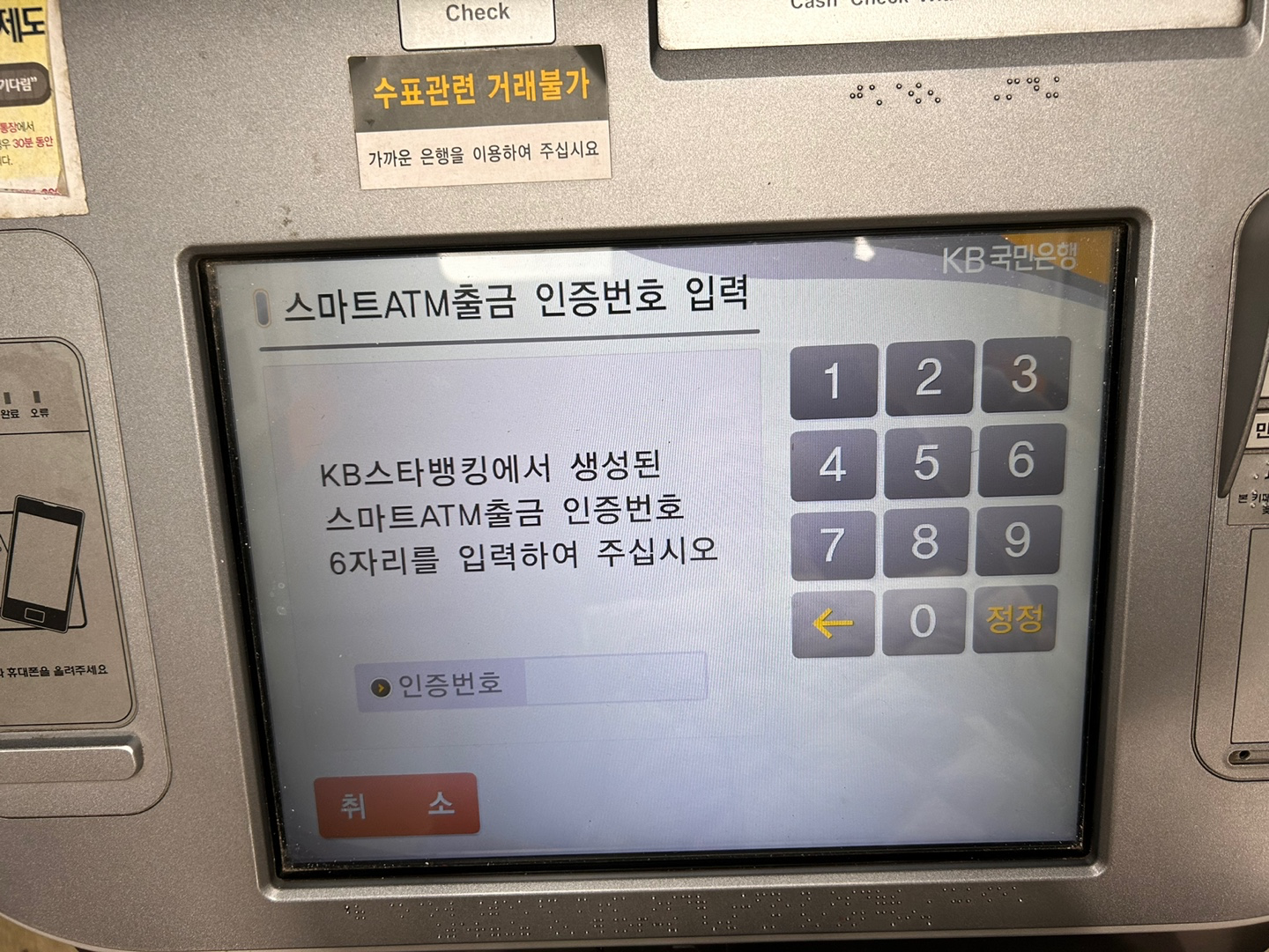 ATM 인증번호 6자리가 뜹니다.