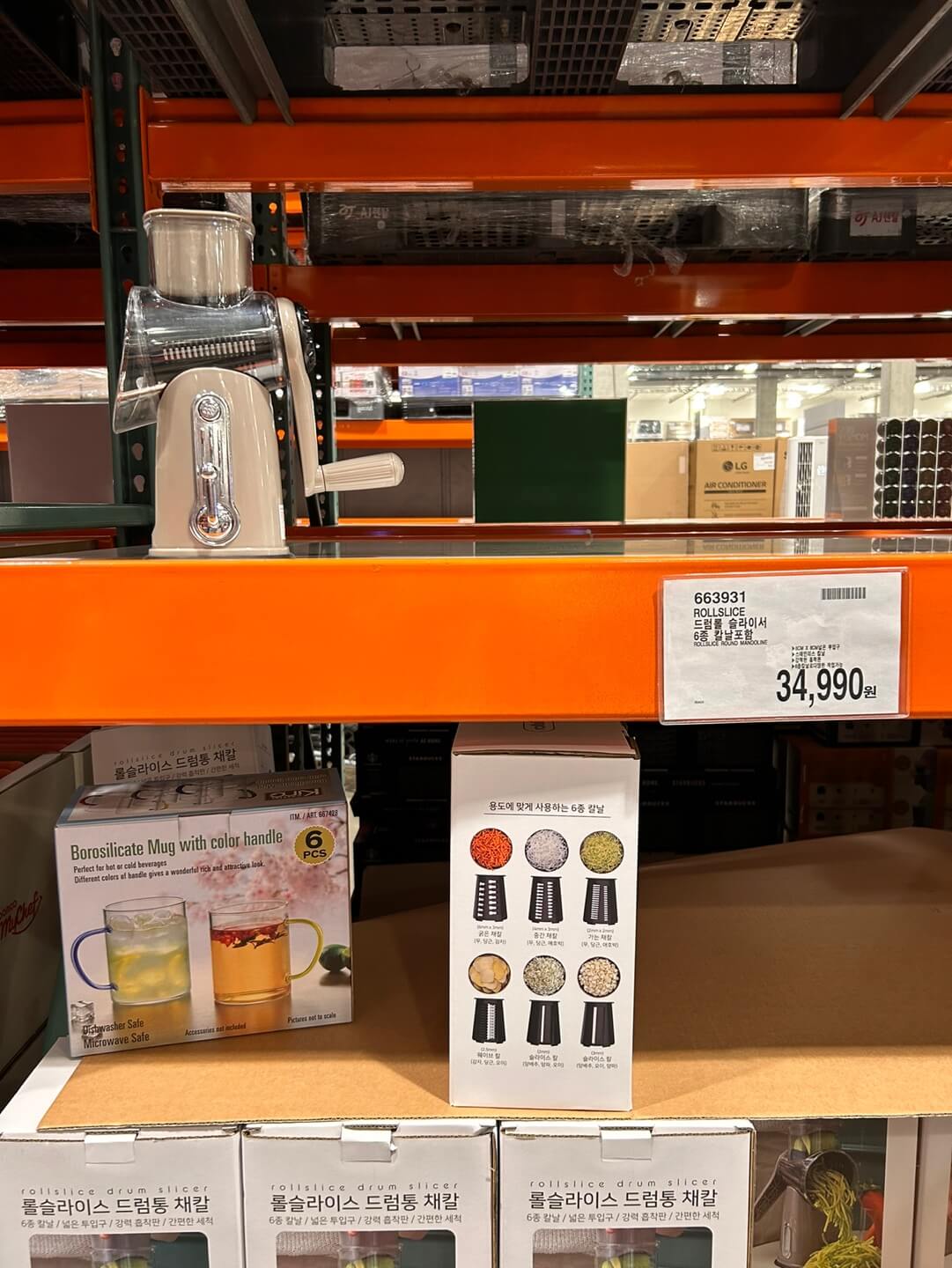 새로운 주방 아이템들은 언제봐도 즐겁습니다. 채소를 다양한 모양으로 커팅해 주는 드럼롤 슬라이서는 34,990원이었으며, 마리 슈타이거의 전동그라인더는 한 쌍에 26,990원이었습니다. 인터넷에서 검색해본 결과 최저가보다도 3천 원가량 저렴해서 구매하실 분들은 코스트코에서 사셔도 이득입니다.