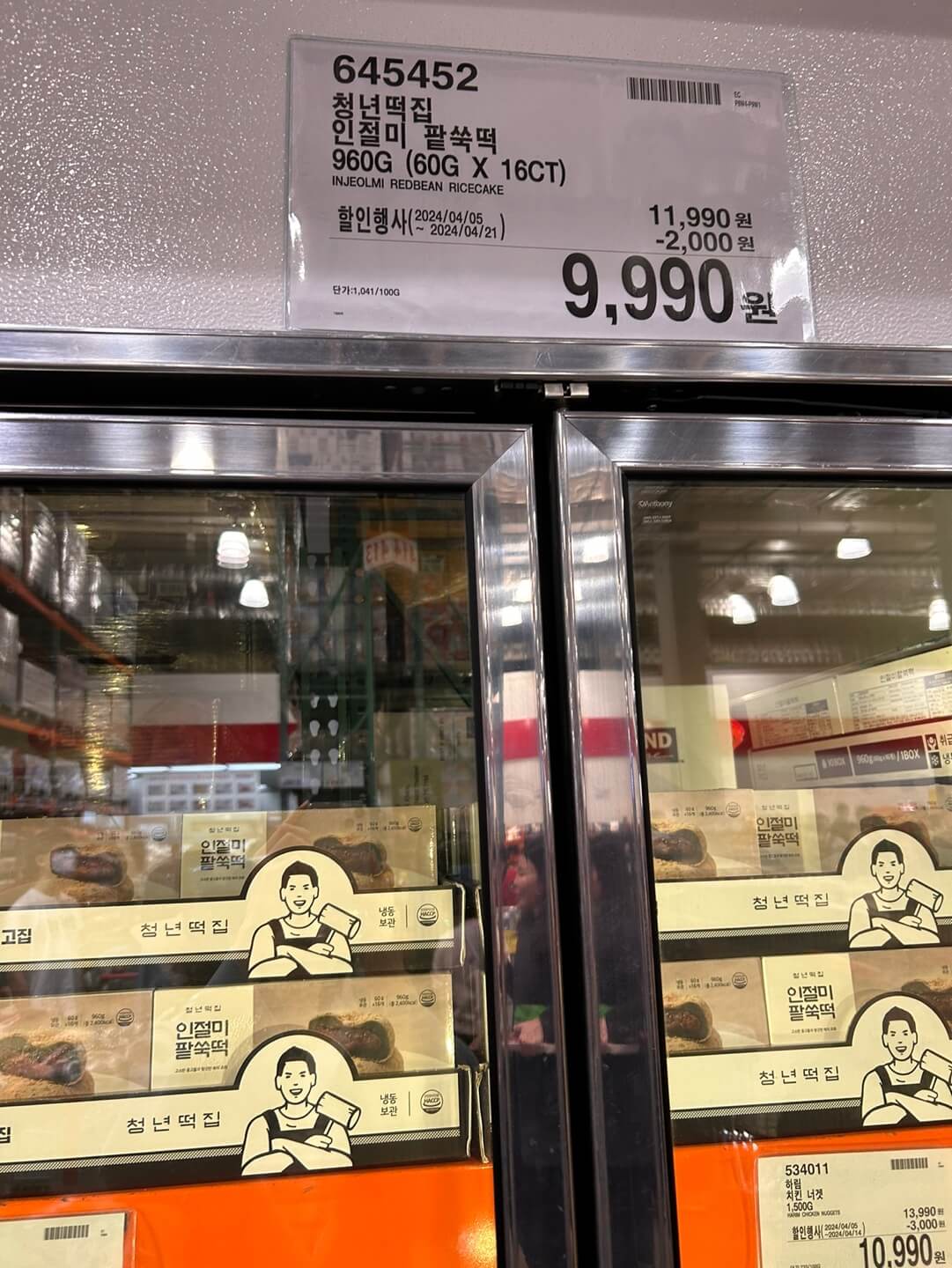 샐러드에 한덩이만 올려도 멋있는 음식으로 변모하게 해주는 이 부라타 치즈는 저의 최애템입니다. 쿠팡에서는 개당 거의 5천 원에 판매되고 있는데요. 지금 코스트코에서는 할인상품으로 지정되어 13,490원에 4통을 구매하실 수 있습니다. 입이 심심할때 먹으면 좋을 듯한 청년떡집의 인절미 팥쑥떡도 2천 원이 할인된 9,990원에 판매중이었습니다.