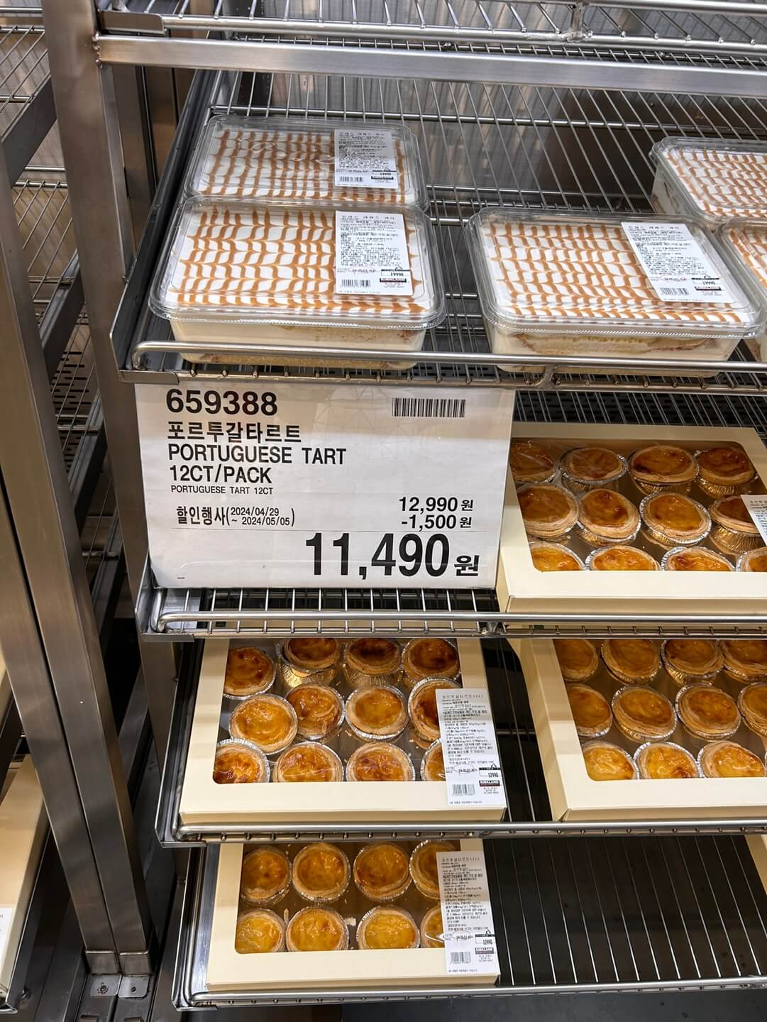 코스트코 제빵 종류의 맛이 좋다는 것은 대부분 아시고 계실 겁니다. 좋은 재료를 아낌없이 쓰기 때문에 맛도 좋은 건데요. 양도 많고 가격도 착한 편입니다. 그래서 아이들 간식용으로 구매하시는 분들이 많다고 합니다. 포르투갈 타르트를 5/6일까지 1500원이 할인된 11,490원에 판매됩니다.