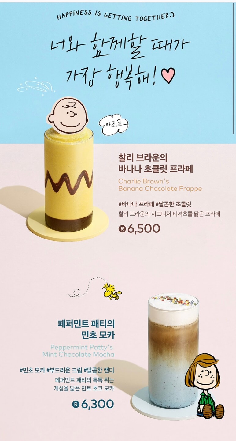 귀여운 스누피로 데코레이션 된 케익과 콜라보된 컵 등을 선보일 예정이라고 하는데요. 어떤 음료와 케이크 그리고 상품을 출시하는지 자세하게 알아보도록 하겠습니다.