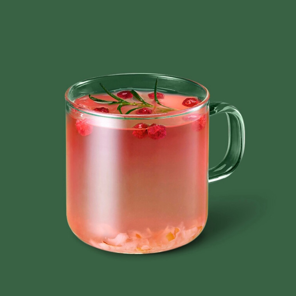 핑크 캐모마일 릴렉서는 이름 그대로 한 모금 마시면 왠지 안도감이 드는 음료입니다. 음료 위에 장식된 로즈마리가 눈에 띄는데요. 마치 트리를 연상케 합니다. 그 주위를 장식하고 있는 레드커런트는 크리스마스 분위기를 물씬 풍기고 있습니다.