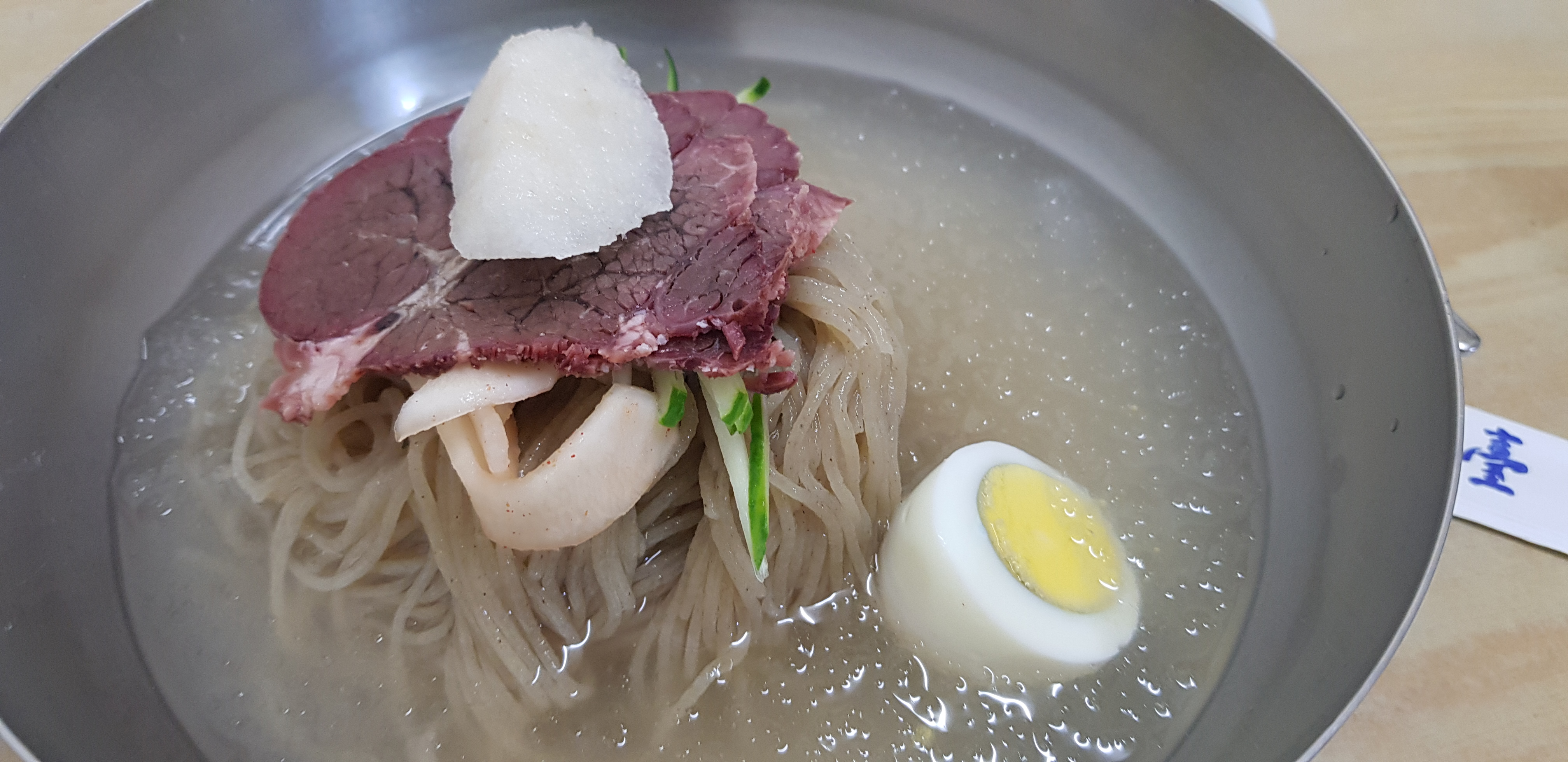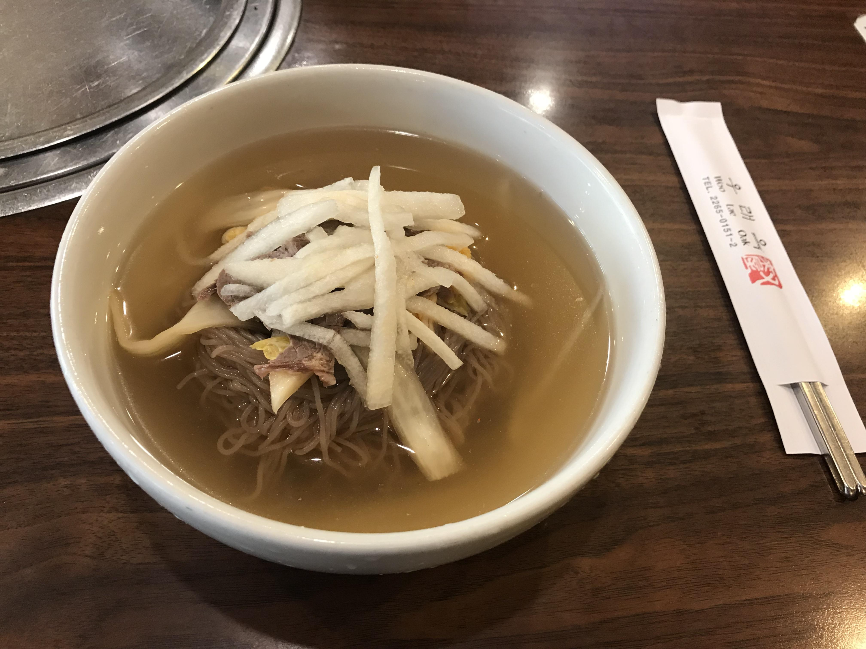 2023 미쉐린 가이드 서울에 선정된 서울의 대표 평양냉면집인 우래옥의 올해 평양냉면 가격은 16,000원입니다. 먼저 국물을 들이키면 심심하면서 은근하게 올라오는 육수의 향이 매력적인 집입니다. 적당하게 쫄깃한 면에 식초와 겨자를 넣어 먹으면 더욱 맛이 좋습니다. 면 위에는 고기고명이 올려져 있고, 채 썬 배가 올려져 있습니다. 평양냉면의 양은 포만감을 주며 적지 않은 편입니다.