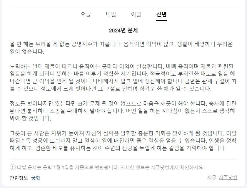 - 신년운세 무료보기 사이트(네이버, 다음)