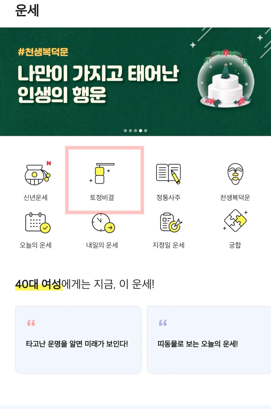 3. 홈 화면에서 토정비결을 클릭합니다.