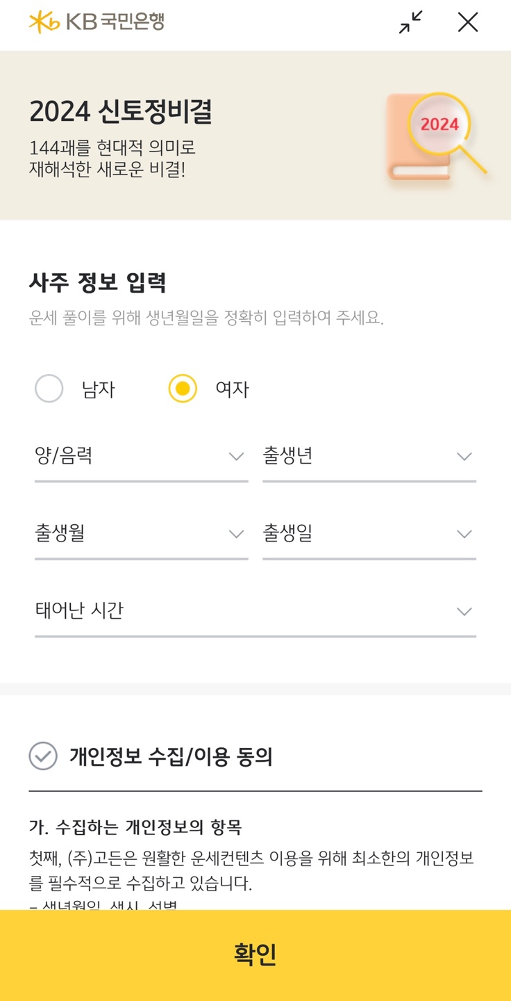 - 무료 신년운세 어플 (국민은행 스타뱅킹 운세 서비스)
