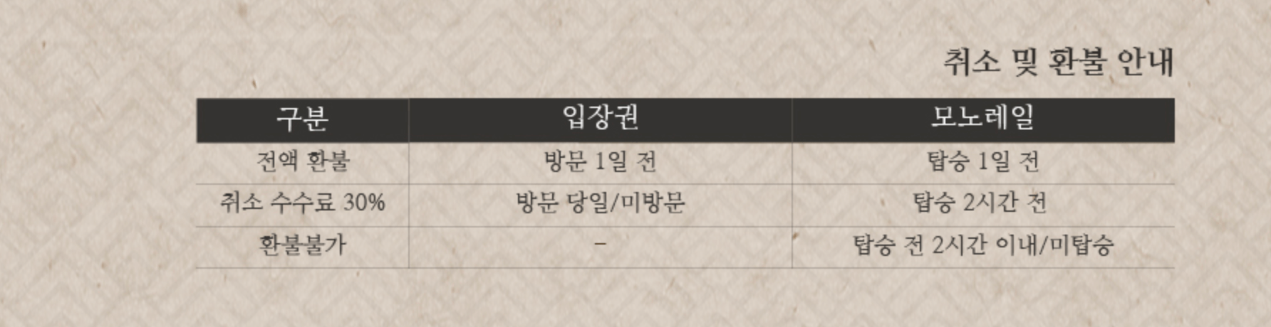 ※ 개인거래나 다른 경로로 취득한 티켓은 취소나 환불이 불가능합니다.