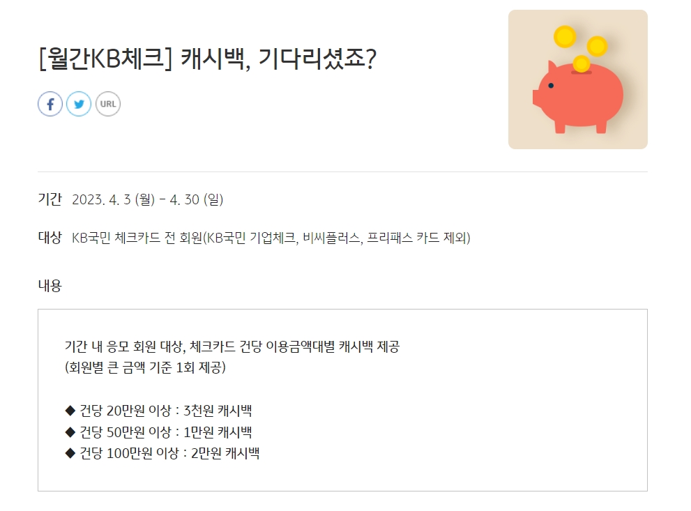 오늘은 국민카드 4월 이벤트 소식을 전합니다. 응모만 하면 캐시백으로 돌아오는 이벤트 지금부터 소개해드릴게요.