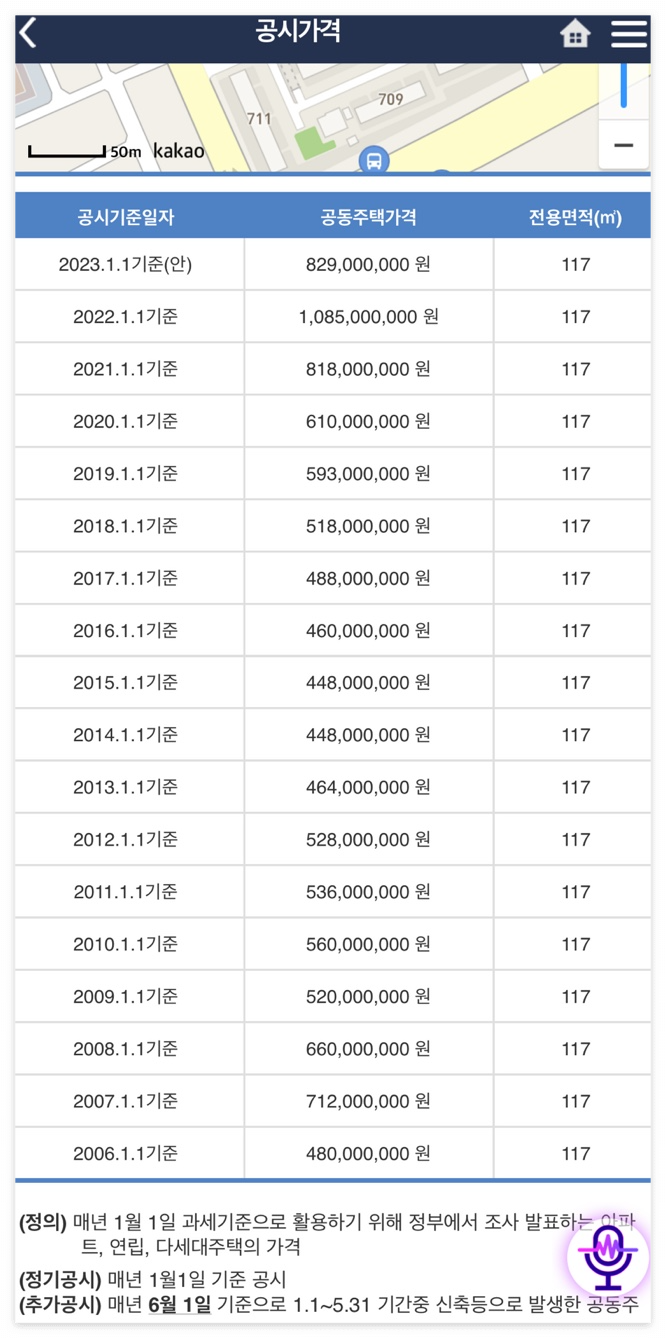 본인의 주소를 동명 혹은 도로명으로 검색하여 아파트의 동과 호수를 입력합니다. 그러면 연도별로 공시가격을 비교해 볼 수 있습니다. 올해의 공시가격은 작년보다 떨어져 2021년 수준으로 돌아 온 것을 알 수 있습니다.