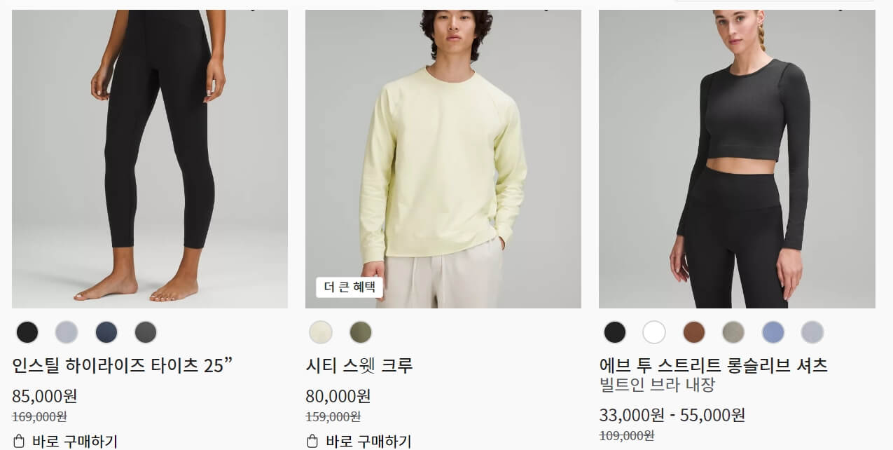 룰루레몬 블랙프라이데이 세일은 오직 온라인 몰에서 4일간만 진행합니다. 따라서 온라인에서 마음에 드는 제품을 찾아 사이즈를 먼저 선점하는 것이 중요한데요. 주요 세일 품목에 대해 알아보도록 하겠습니다.